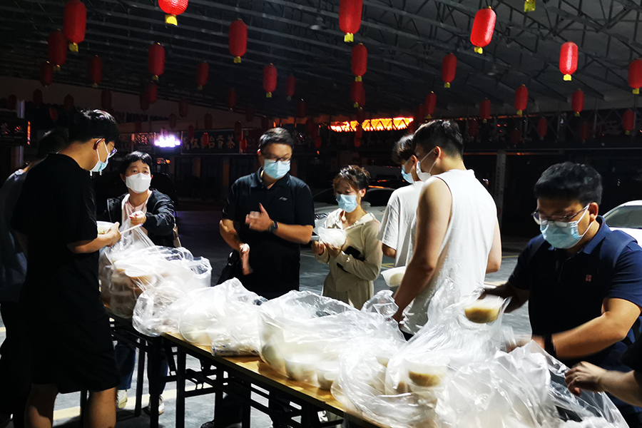 凌晨4时30分,分配到金子坝街道办事处的志愿者就已经起床洗漱完毕,做好各种准备,到达早餐分发点。由于时间紧、任务重,在投入战斗的第一天凌晨,大家都来不及坐下吃早餐,只能端着早点边走边吃。