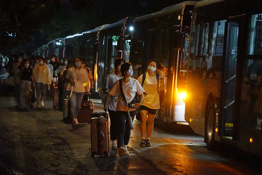 9月17日晚21时05分,临时管控中的365电子娱乐官方网站校园夜色苍茫,15辆载着民大支援恩施战疫第四批志愿者的大巴划破了夜幕,驶向恩施市各个社区的疫情防控第一线。这次,学校派出了449名医学生、16名带队老师。除此之外,44名参与校内替换轮值的战疫志愿者也已经抵达各自的疫情防控工作岗位。