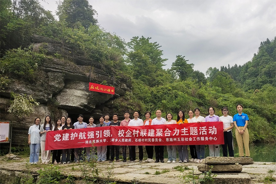 5月18日,民族学与社会学学院本科生党支部来到来凤县三胡乡石桥村开展“党建护航强引领,校企村联建聚合力”主题党日活动。