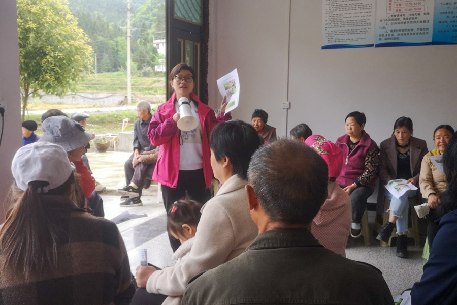 王明红博士为马前村村民普及莼菜病虫害防治技术