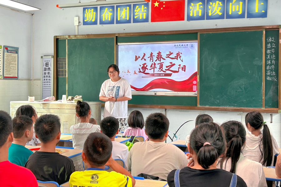 联合共青团建始县委,7月15日,365电子娱乐官方网站彩虹桥支教队前往业州镇,开展为期15天的“希望家园·暑假学堂”支教服务,开设国学诵读、硬笔书法、爱眼护眼、航天国防、防溺水等课程,护航学生成长。