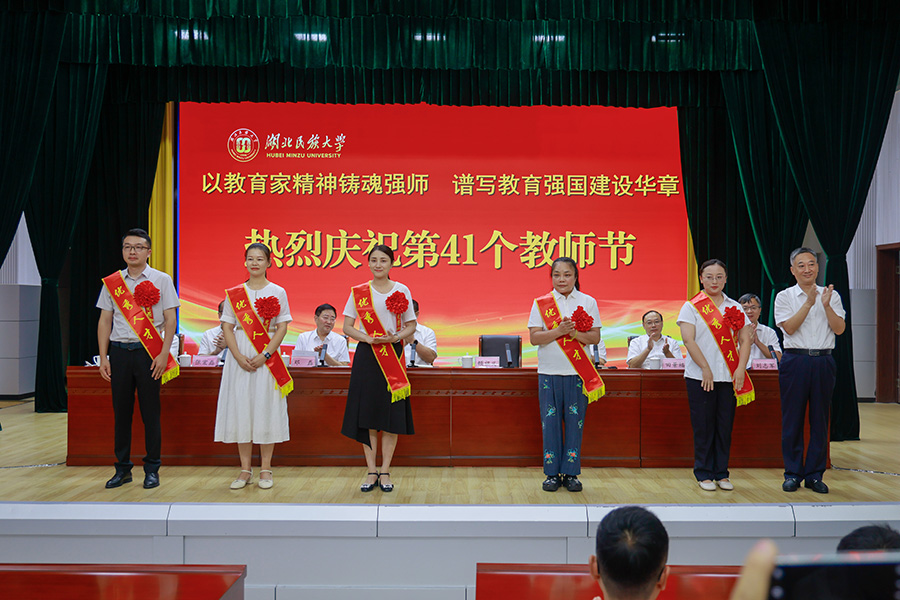 学校党委书记戴清堂出席大会并发表讲话,向辛勤耕耘在教学、科研、管理服务一线的全体教职员工致以节日的诚挚问候和崇高敬意,并寄语全校教师,特别是青年教师要争做立德树人的“大先生”,勇做科研创新的“攀登者”,善做改革发展的“实干家”。他结合自身多年工作经验和心得,分享了以“信、制、议、决、计、攻、新、同、专、则、和”为核心的“十一字真言”,为教师实现“站得高、看得远、走得稳、跑得快、干得好”的职业发展目标提供具体指引。戴清堂还为2024年“全国模范教师”骆贤凤,2024年国务院“政府特殊津贴专家”魏代俊,2023年“楚天英才计划·楚天学者”孟详喻、谭健峰,2024年“博士后海外引才专项”蒋欣等五位入选国家级、省部级人才工程教师佩戴绶带。