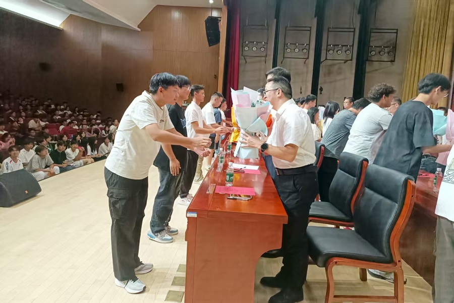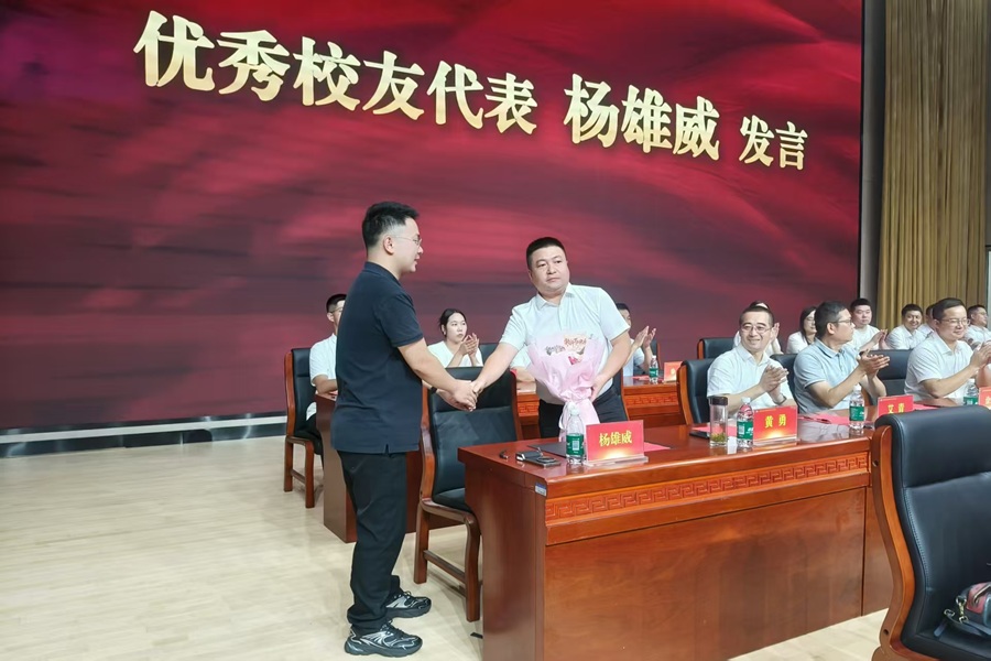 9月10日晚,智能科学与工程学院举行了2025级新生开学典礼暨开学第一课活动,优秀校友代表、2021届电子信息科学与技术专业毕业生、武汉高德红外股份有限公司技术部主管杨雄威为班主任黄勇老师特意准备了一份心意,向恩师表达感谢并送上节日的祝福。新生代表为各位在场的老师送上节日的祝福与鲜花,表达对师长的敬意。