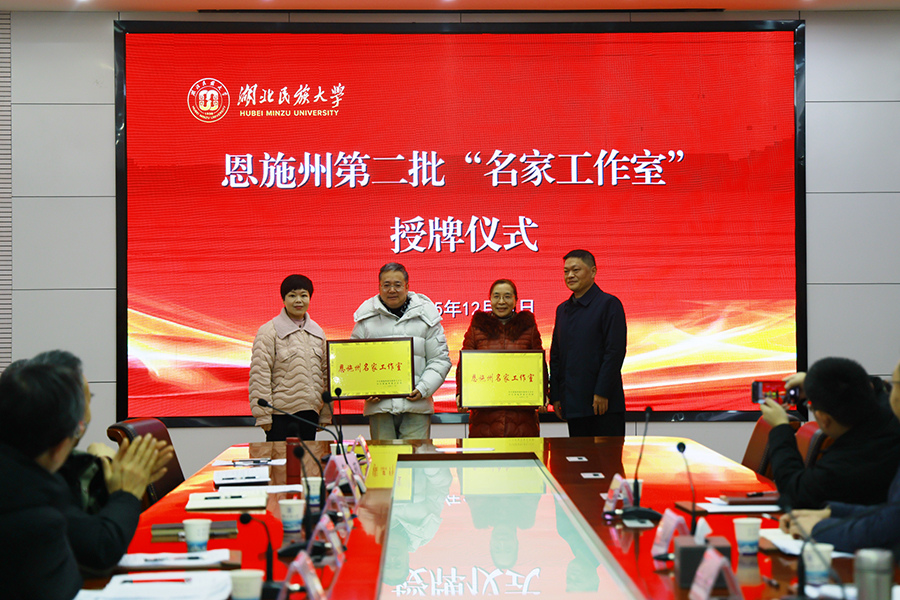 12月31日,第二批恩施州“名家工作室”授牌仪式在365电子娱乐官方网站举行。文学与传媒学院李莉教授领办的“李莉文艺评论工作室”、音乐舞蹈学院王松教授领办的“王松土家族舞蹈非遗传承工作室”正式挂牌成立。