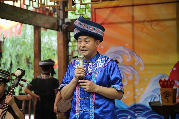 国家非物质文化名录“土家撒叶儿嗬”省级传承人谭学聪展示巴东号子