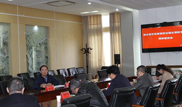 本网讯 10月23日-10月-24日,中共湖北省委宣传部、湖北省教育厅专家组来我校调研湖北省示范思想政治理论课教学基地建设情况。武汉理工大学马克思主义学院院长朱喆教授任组长,武汉科技大学刘勇教授、汉江师范学院任莹老师担任组员。调研组通过座谈会、听课、听报告和实地查看,全方位了解我校省示范思想政治理论课基地建设情况。