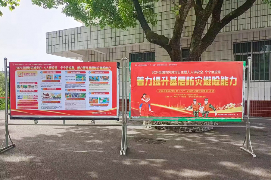 今年5月6日至12日为防灾减灾宣传周,主题为“人人讲安全、个个会应急——着力提升基层防灾避险能力”,保卫工作部(处)通过设置宣传展板等方式,向广大师生宣传了各类自然灾害的基本知识和应对措施,通过生动的图解和案例分析,强调了在不同灾害情境下迅速有效自救与互救的重要性。