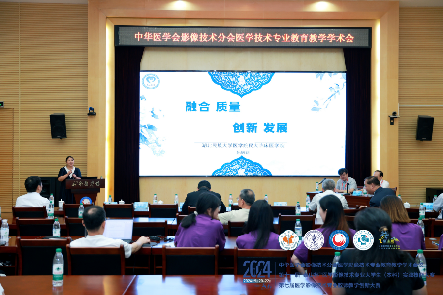 在医学影像技术专业教育教学学术会议上,民大临床医学院乐敏莉老师作了题为《BOPPPS混合教学模式在医学影像诊断学教学中的探索与应用》的专题报告,汇报了他们在教学改革创新中的实践与成果。