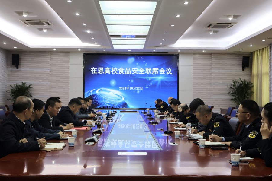 活动当天,在恩高校食品安全联席会议在行政楼3号会议室召开。三所高校分别汇报了学校食品安全管理情况。州市场监管局、州教育局就高校食品安全监管工作提出要求。州食药安办副主任、州市场监管局党组成员、总工程师陈必伟表示,食品安全应坚持问题导向,各高校要提高典型案例危机意识,反思短板和漏洞,结合工作实际搞好落实。