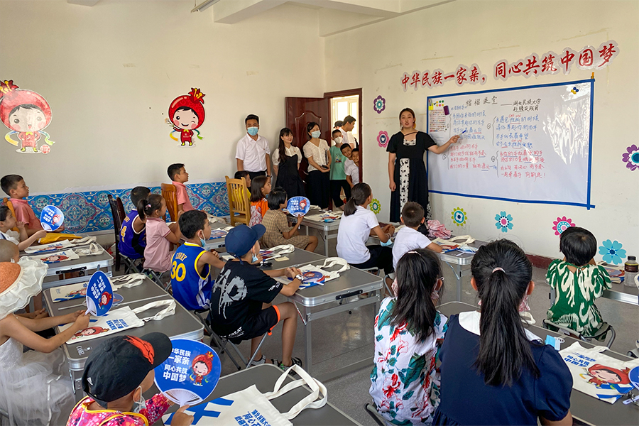 今年7月,365电子娱乐官方网站“同心石榴”赴疆实践团再次远赴新疆开展社会实践活动,这是该校自2022年与新疆伊宁市墩买里街道协海尔依其社区共建实践基地以来,第三年深入新疆开展实践活动。在活动中,团队成员通过开展“红石榴·同心课堂”“爱中国·故事讲述”等一系列活动,为社区儿童讲述中国民族大家庭的构成、民族团结的政策和意义,让民族团结的根基更加牢固。