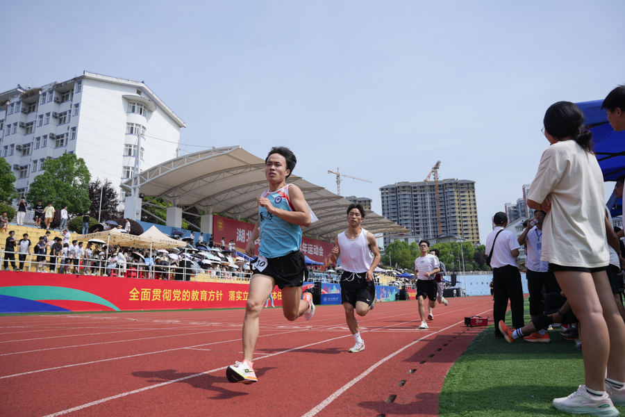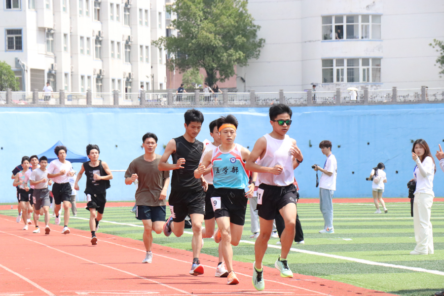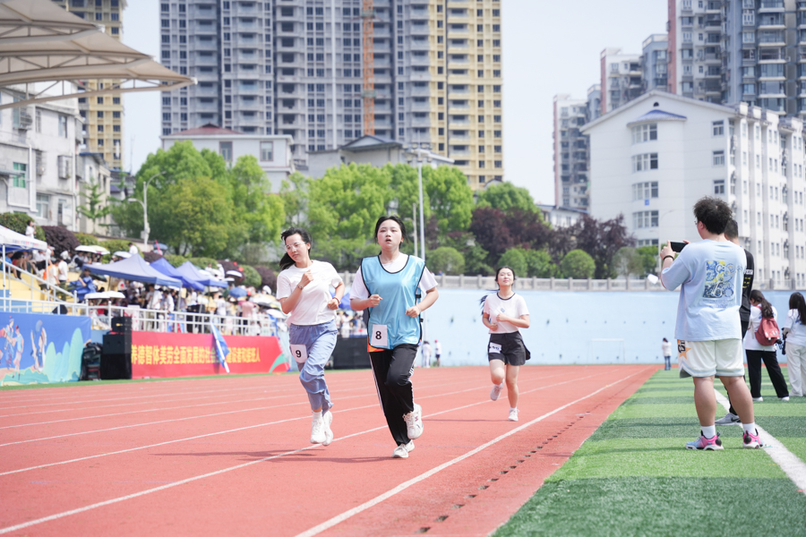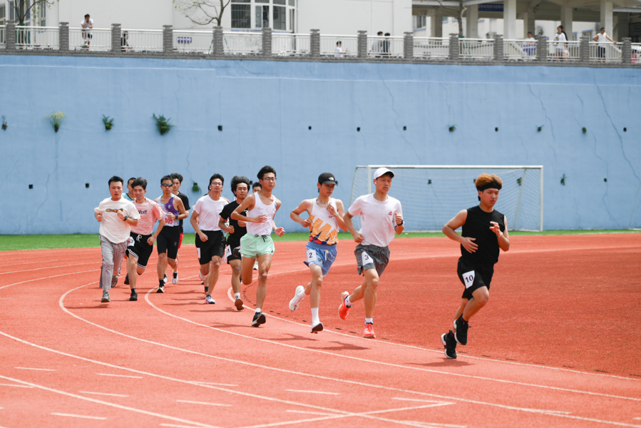 各就各位!一声令下,疾跑如风。男、女子赛跑如火如荼地进行中。裁判员枪声一发,运动健儿们矫健的身姿成为了跑道上一道亮丽的风景线。