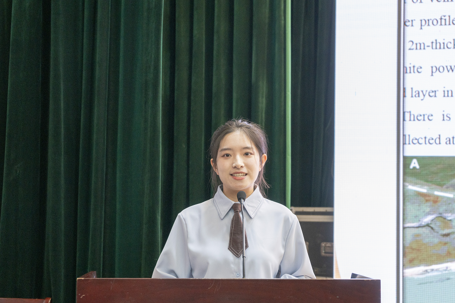 文学与传媒学院研究生薛峥为在场师生演绎了文字文献学研究“上下而求索”的浪漫,她对汉语智慧的诠释表达了最赤诚的家国情怀。