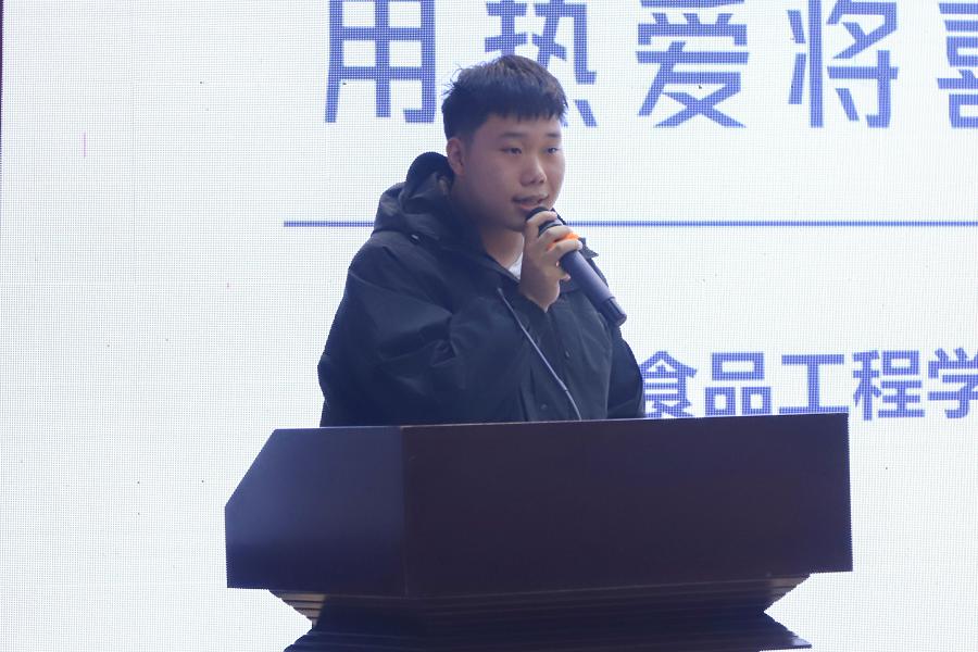 化学与环境工程学院研究生冯亮通过讲述自己在实验过程中改进烘箱的经历,鼓励学生应百折不挠、勇往直前。