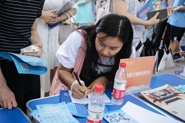 本网讯(记者 周思琦 周希/文 韦雨欣/图)9月25日,由湖北人力资源中心和我校联合主办、武汉方阵人力资源市场有限公司承办的湖北省高校毕业生秋季巡回招聘会在德智楼侧门大厅举行。