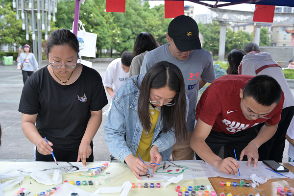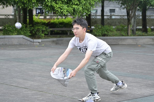 活动现场布置展棚若干,设置有“环保知识大作战”“以物换物”“你扔我接”“环保DIY”4个游戏环节。“环保知识大作战”以知识竞赛的形式展开,考验参与者对环保知识的了解程度,学生们冥思苦想,在工作人员和场外观众的提示下体验游戏、收获知识。“以物换物”环节,学生之间交换旧物、各取所需,实现废物循环利用,参与者准备充分、积极性高,现场气氛火热、物品丰富,让人目不暇接。“你扔我接”环节,参赛者两两一组、默契配合,现场的欢声笑语吸引观众驻足观看、呐喊助威。“环保DIY”环节,参与者利用环保袋及绘画工具,手持画笔,沾染颜料,搭配色彩,将绘画与环保巧妙的结合在一起,各自发挥想象力与创造力,相互交流心得,在一笔一划的勾勒中体验创作的乐趣。