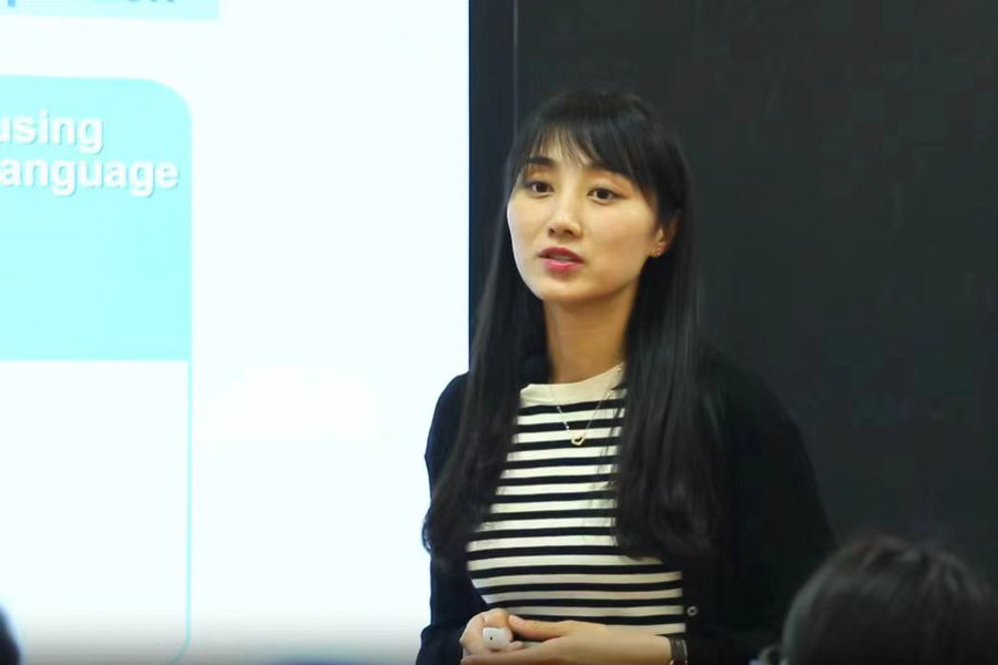 洪佳丽认为,大学生的英语学习重点应放在应用能力的培养上,而非重复高中阶段已经掌握的语法和词汇等基础知识。针对学生之间存在的学习差异,她为不同水平的学生设计了个性化的任务。对于基础较弱的学生,她要求他们在课堂上复述自己准备的内容,以此加强基础知识的记忆;而对于基础较好的学生,则鼓励他们即兴发言,通过即时反馈来深化语法和词汇的运用。这种方法不仅提高了学生的语言技能,也增强了他们的自信心。
