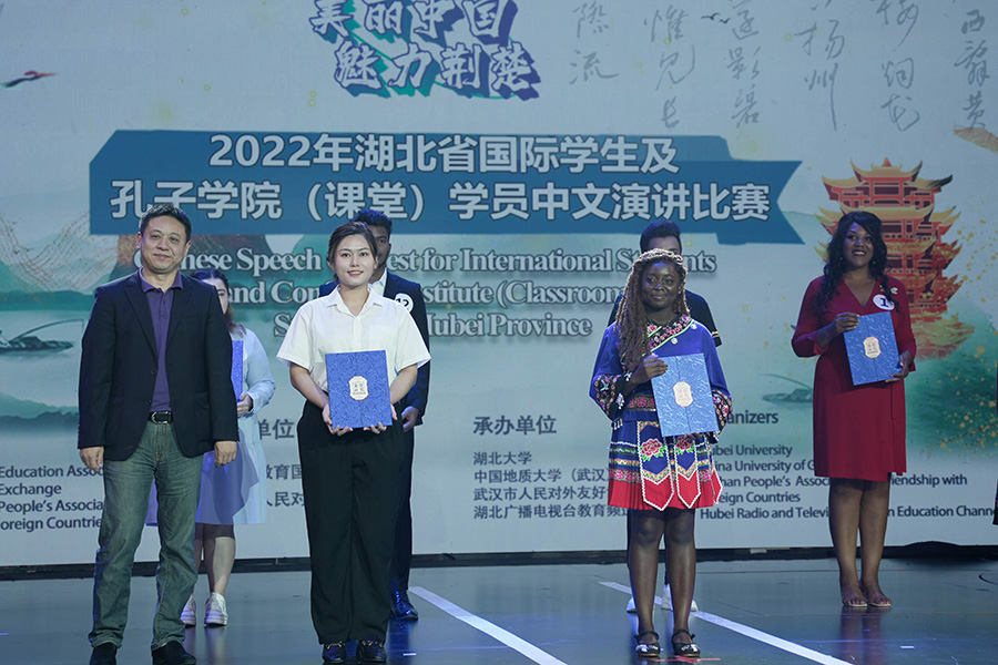 8月12日下午,由湖北省教育国际交流协会、湖北省人民对外友好协会主办的“2022年湖北省国际学生及孔子学院(课堂)学员中文演讲比赛(决赛)”在湖北广播电视台举行。我校参赛的两名国际学生表现优异,获得三等奖、最佳才艺奖、优秀奖,国际教育学院陈春红老师获得“优秀指导教师”称号。 颁奖现场 颁奖现场本次演讲比赛由湖北省教育国际交流协会、湖北省人民对外友好协会主办,湖北大学、中国地质大学(武汉)、武汉市人民对外...