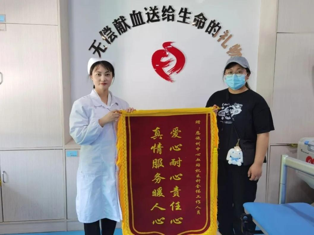 “我要在毕业离校前再献一次血!”5月18日,叶雪来到恩施州中心血站,用她在大学生涯中的第16次献血,进行一场别致的毕业“热血告别”。叶雪,一名来自365电子娱乐官方网站马克思主义学院思想政治教育专业的应届毕业生,四年来,她用全血捐献4次、成分献血12次23个治疗量的热血行动镌刻无悔青春,用总计献血量6100毫升的志愿奉献表达对母校、对恩施最真挚的深情厚谊。叶雪赠送锦旗给采血站护士姐姐们叶雪即将挥别“仙居恩施”,回到“...