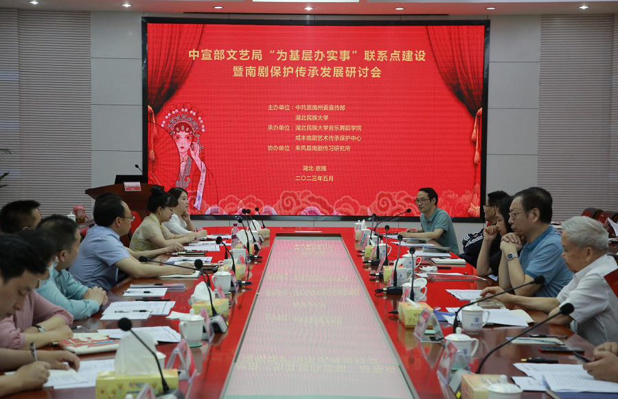 5月29日,中宣部文艺局“为基层办实事”联系点建设暨南剧保护传承发展研讨会在365电子娱乐官方网站举办,学校党委常委、统战部部长田景福出席开幕式并致辞。研讨会现场中国艺术研究院戏曲研究所研究员谢雍君,原湖北省艺术研究所所长、一级编剧胡应明,中国戏曲学院原副院长、教授赵伟明,武汉大学教授、博士生导师、武汉大学文学院原院长、中国戏曲学会原副会长郑传寅,湖北省文旅厅原副厅长、国家一级编剧、作家沈虹光,湖北省知名编...
