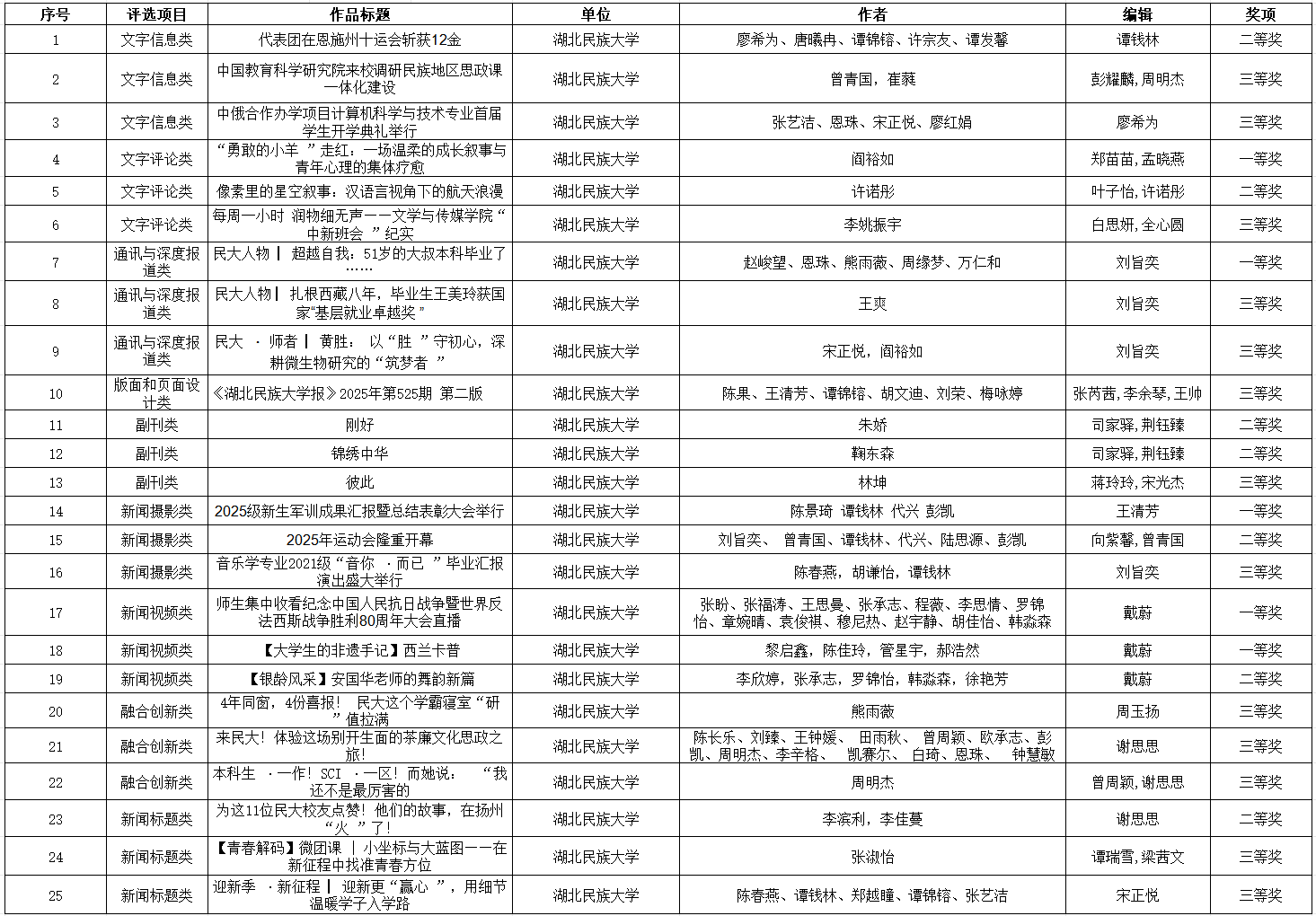 365电子娱乐官方网站25件作品获2025年度湖北高校新闻奖