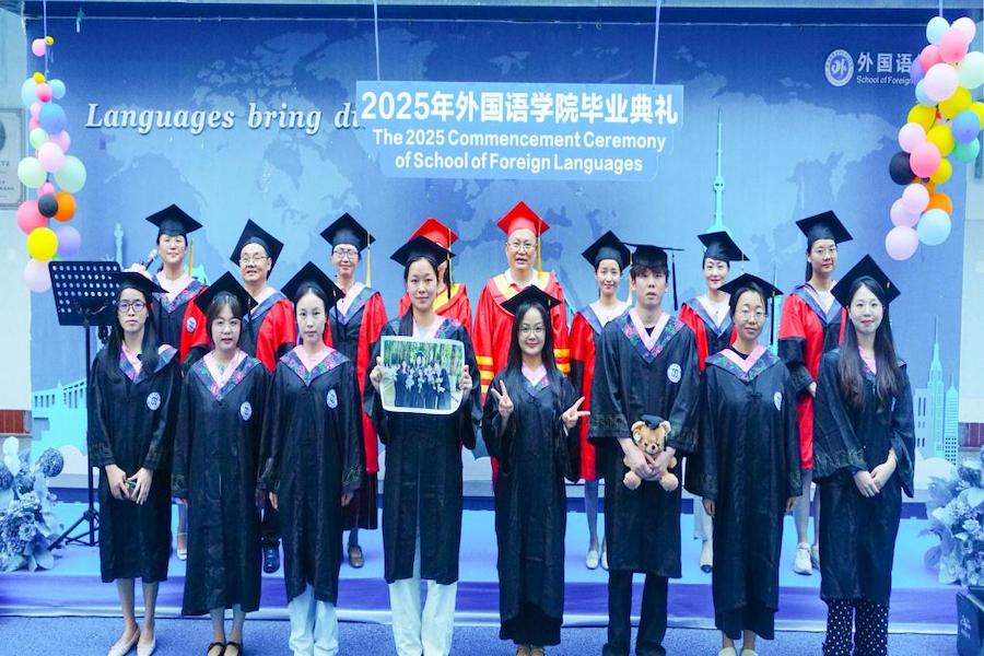 六月芳华正盛,青春扬帆起航。6月13日下午,学校外国语学院2025年毕业典礼暨学位授予仪式隆重举行。党总支副书记赵琴,外国语学院院长骆贤凤、副院长陈斌受邀参与本次活动。全体毕业班班主任、辅导员及毕业生代表共同见证这一重要时刻。典礼之前,外国语学院精心策划的“学士帽簪花”和“隔空对话”环节的活动率先点燃毕业季氛围。毕业生以巧手装点学士帽,将鲜花与创意融入传统毕业服饰。一簇簇绽放的簪花,既是对校园时光的深...