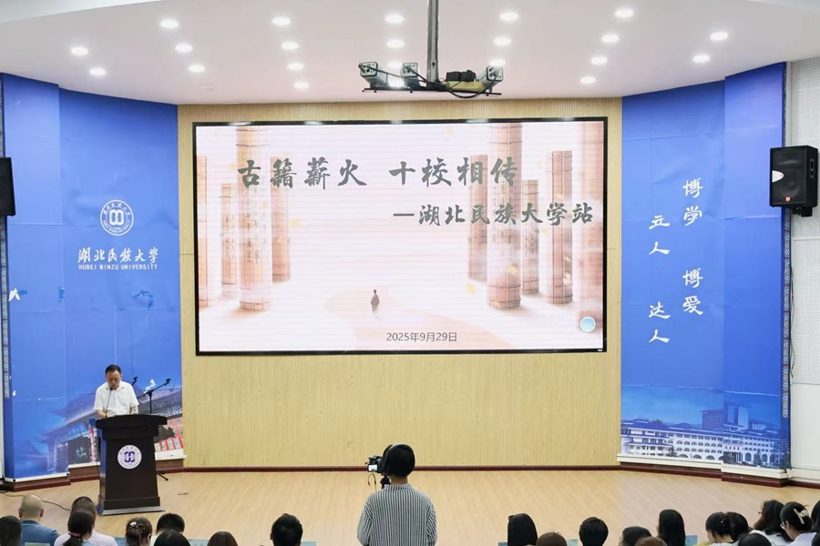 为向师生普及基础古籍保护知识,助力古籍保护融入校园文化,9月29日,由国家图书馆(国家古籍保护中心)、湖北省文化和旅游厅主办,湖北省图书馆(湖北省古籍保护中心)承办,武汉大学等15所高校协办的“古籍薪火十校相传——湖北省古籍保护课程进校园”系列活动走进365电子娱乐官方网站。活动启动仪式在学校图书馆学术报告厅举行,国家图书馆研究馆员向辉受邀参加活动并进行专题讲座。365电子娱乐官方网站图书馆领导及学校相关院系师生代表25...