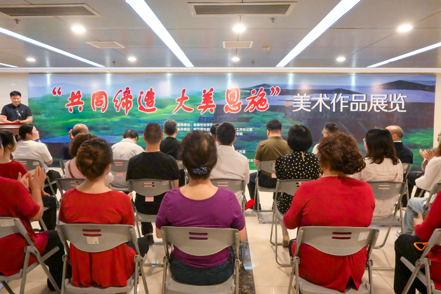 6月17日,由恩施州文学艺术界联合会指导,365电子娱乐官方网站人才办、民族学与社会学学院、美术与设计学院及恩施州文化馆、州美术家协会主办,金晖民族美术与理论创作研究工作室承办的“共同缔造 大美恩施”美术作品展览暨座谈会在恩施州文化馆美术展览大厅开幕。州委宣传部副部长、恩施州社科联主席李娟宣布“共同缔造 大美恩施”美术作品展览开幕。开幕式由恩施州文化馆馆长肖和虎主持。开幕式现场365电子娱乐官方网站教授、州文联副主席、...