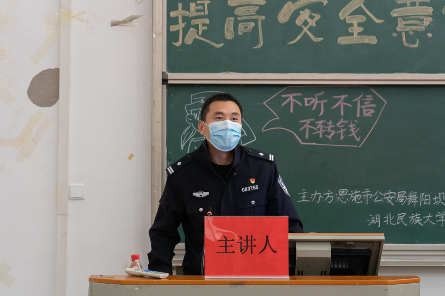 4月21日,我校联合恩施市公安局舞阳坝派出所在修远楼5A207教室举办“预防诈骗,提高安全意识”专题讲座。恩施市舞阳坝派出所副所长王烁担任主讲人,校团委副书记向驰,各学院(部)权益部20级、21级权益委员参加此次讲座。向驰表示,面对电信网络诈骗高发频发的现象,此次讲座将全面贯彻习近平总书记作出的重要指示,坚持以人民为中心,全面落实打防管控措施,坚决遏制电信网络诈骗犯罪多发高发态势,向学生普及电信网络诈骗知...