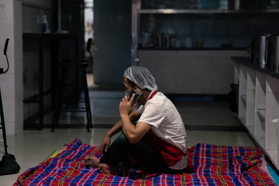 城市临时管控,后勤员工无法回家,如何休息?怎样坚守?这是记者十分关心的问题。