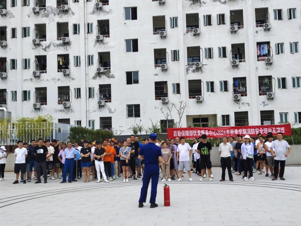 8月28日下午,后勤保障部饮食服务中心在东苑食堂旁广场开展2024年秋季学期消防安全演练活动,饮食服务中心全体工作人员和经营单位的从业人员参与此次活动。活动邀请了恩施市消防大队、学校保卫处等部门领导进行现场指导。