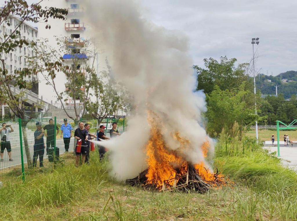 参与人员实操训练灭火器的使用