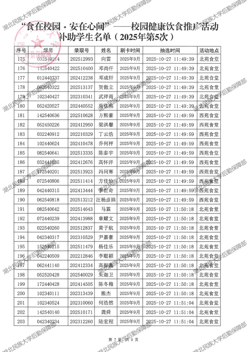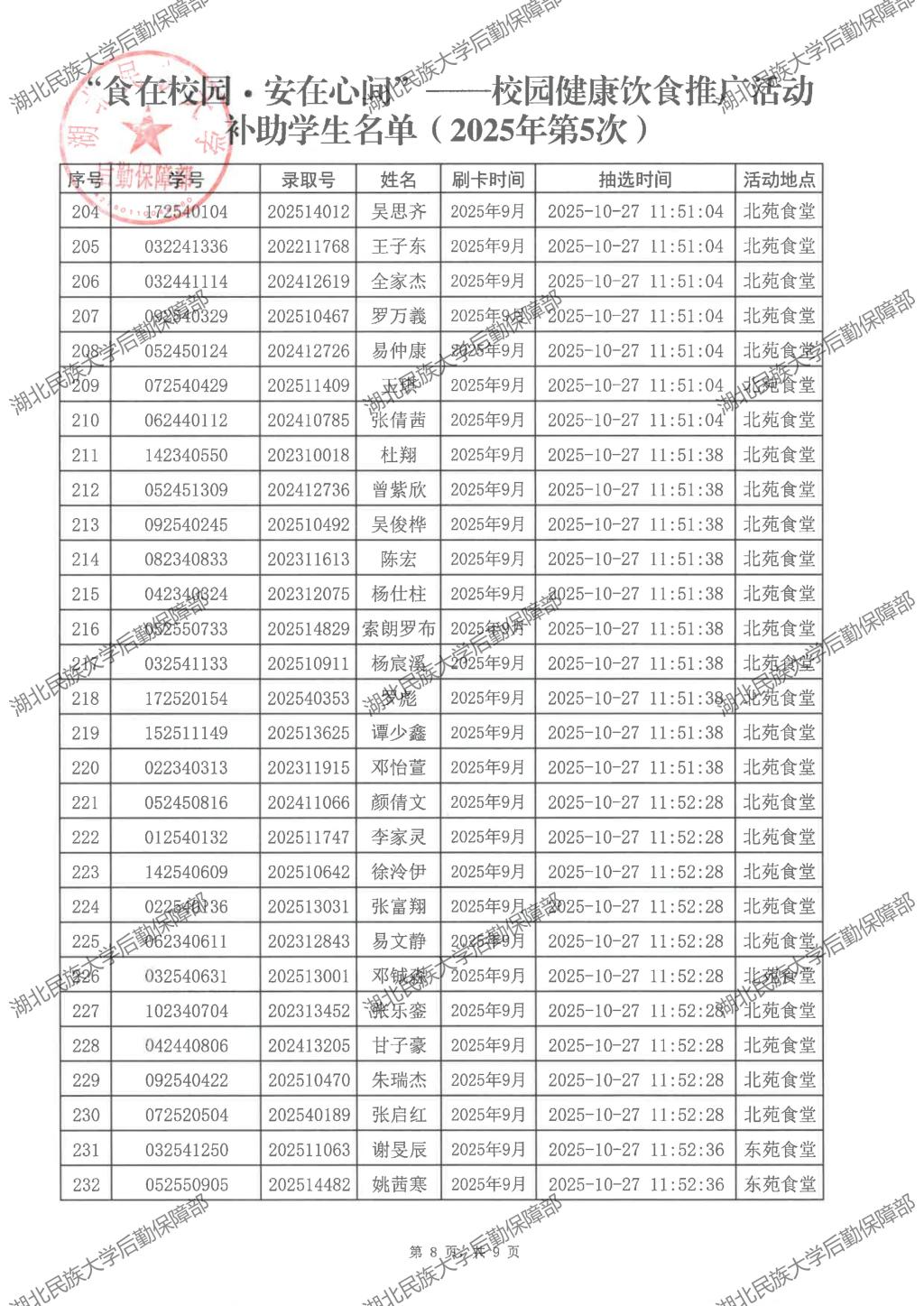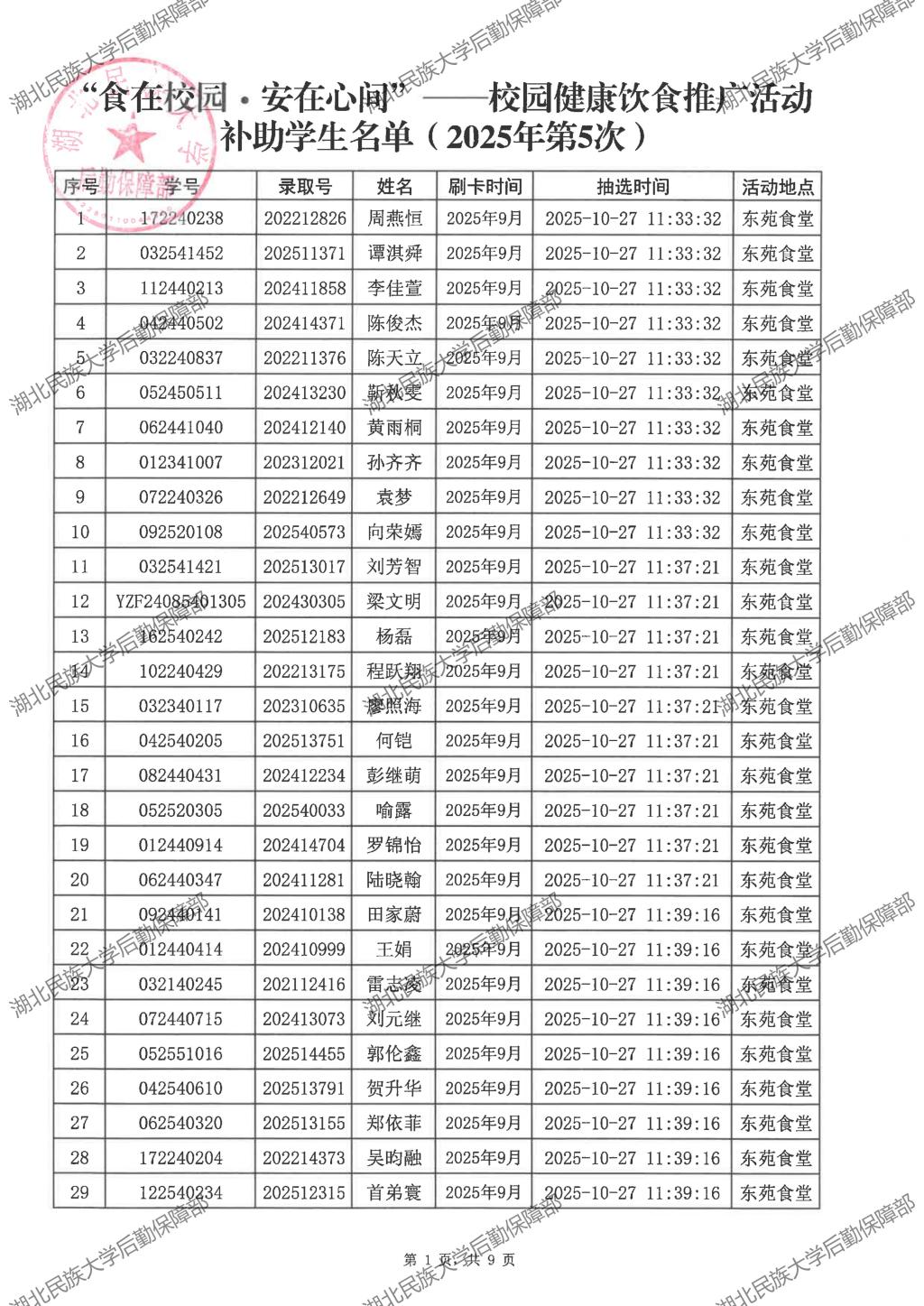 “食在校园·安在心间”——校园健康饮食推广活动(2025年第5次)补助学生名单公示