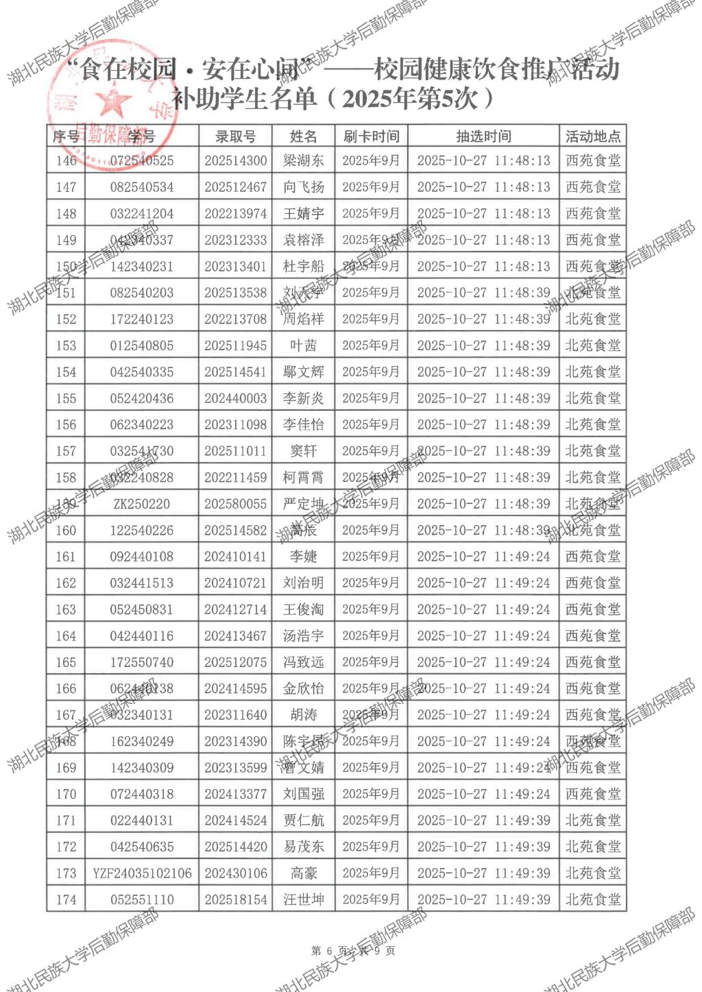 “食在校园·安在心间”——校园健康饮食推广活动(2025年第6次)补助学生名单公示