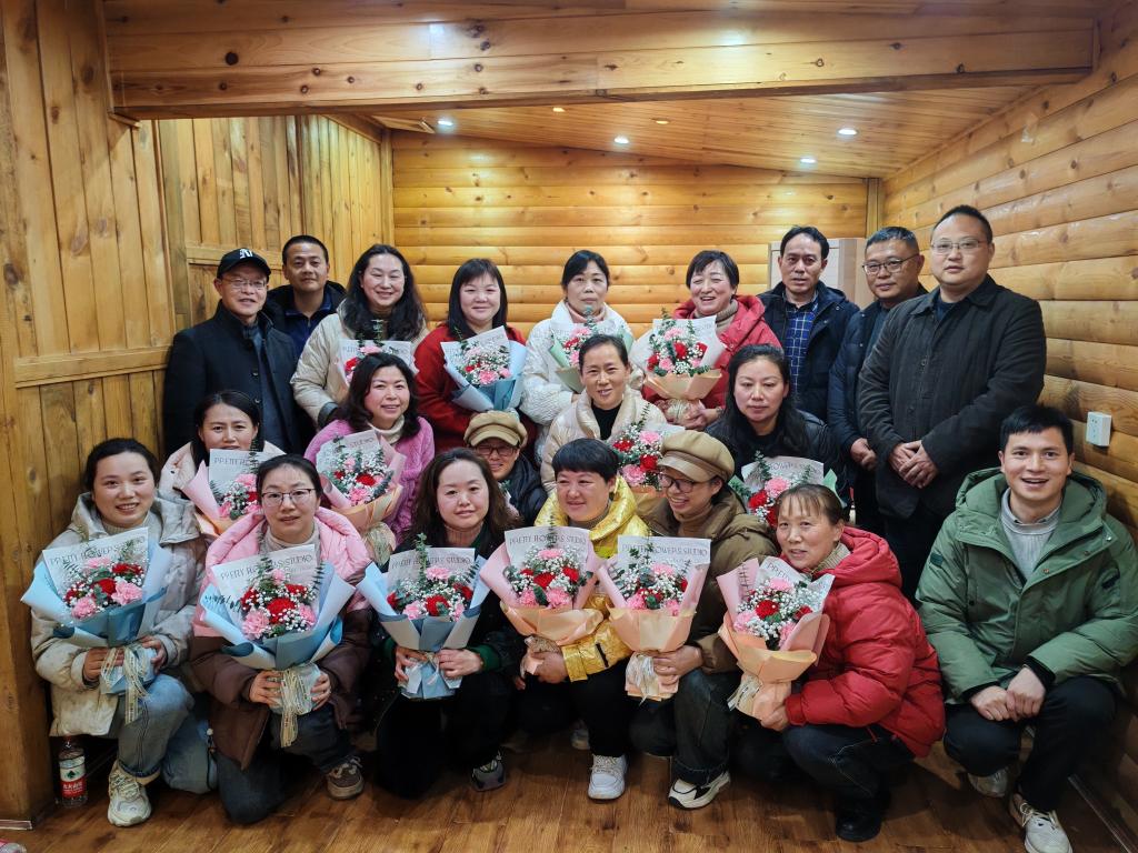 后勤班子成员与女职工合影留念