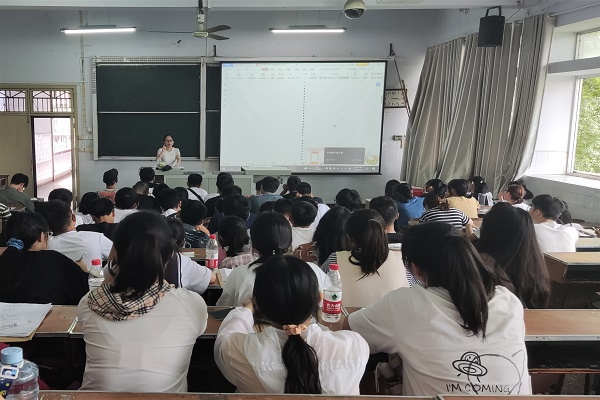 本网讯(通讯员 许智玮)9月7日,我院在2207教室展开新生校园行为规范教育,20级辅导员覃昕担任主讲人。