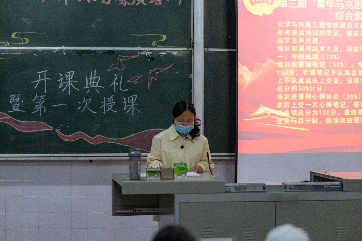 本网讯(通讯员 李怡霖 陈雯/文 刘卫红 许智玮/图) 11月15日,我院在2207教室开展2022年度青马工程培训班开课典礼暨第一次授课。我院学生党支部书记张艺馨,团总支书记彭召元出席此次活动。我院院长李国祥担任主讲人。校团委、我院组织纪检部成员,我院团学会成员,22级全体班干参加。