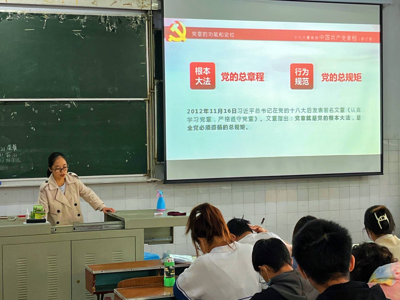 几位老师授课的主题分别是《大浪淘沙,13位一大代表走向不同的道路》《中国共产党统一战线理论》《坚定理想信念,不负时代重托》《培养自己的爱国情怀》《党的纪律和作风建设》《学习中国共产党章程》《中国共产党二十大报告重点内容解读之全面从严治党永远在路上,党的自我革命永远在路上》《建党百年伟大成就与远景目标》。