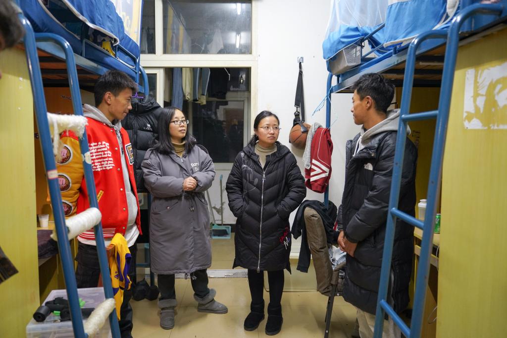 在西藏学生居住寝室,学院党总支副书记张妮艳对三名藏族学生寒假回家的行程安排表达了关切,对汉族学生曹向阳团结多民族学生、积极培育互帮互助寝室文化的事迹表示了赞许;在大四学生寝室,张妮艳详细询问了同学们的考研和就业情况,勉励同学们树立正确的就业观。在大一、大二年级学生寝室,各位辅导员均对同学们的日常学习情况及期末复习进度表示了充分的关心,在此基础上再次强调期末考试纪律要求,号召大家积极备考与诚信应考,将期末考试阶段的诚信教育贯穿于寝室走访过程中。