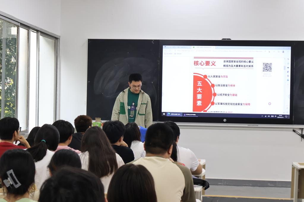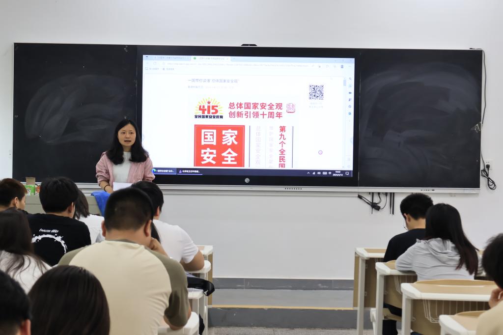 2024年4月15日是我国提出“总体国家安全观”十周年,为提高学生对国家安全的认识,更好地领会总体国家安全观的丰富内涵,各班班主任在本次晚点名中引导学生参加“全国大学生国家安全知识答题”活动,学习总体国家安全观的相关内容,并观看有关国家安全的教育视频。同时,各班班主任教育学生维护国家利益,不做对国家安全有危害的行为,树立总体国家安全观,强化责任担当,争做国家安全的“守护人”。