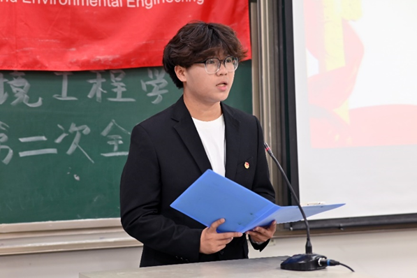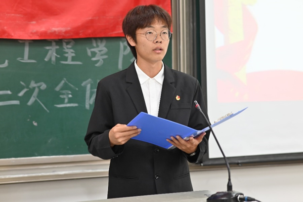 闫俊杰代表我院学生会作《奋楫笃行不止步、履践致远勇争先,用青春和热血奋力谱写壮丽的时代篇章》的主题工作报告,他总结了过去一年里我院学生会的累累硕果,并对未来的工作进行展望。