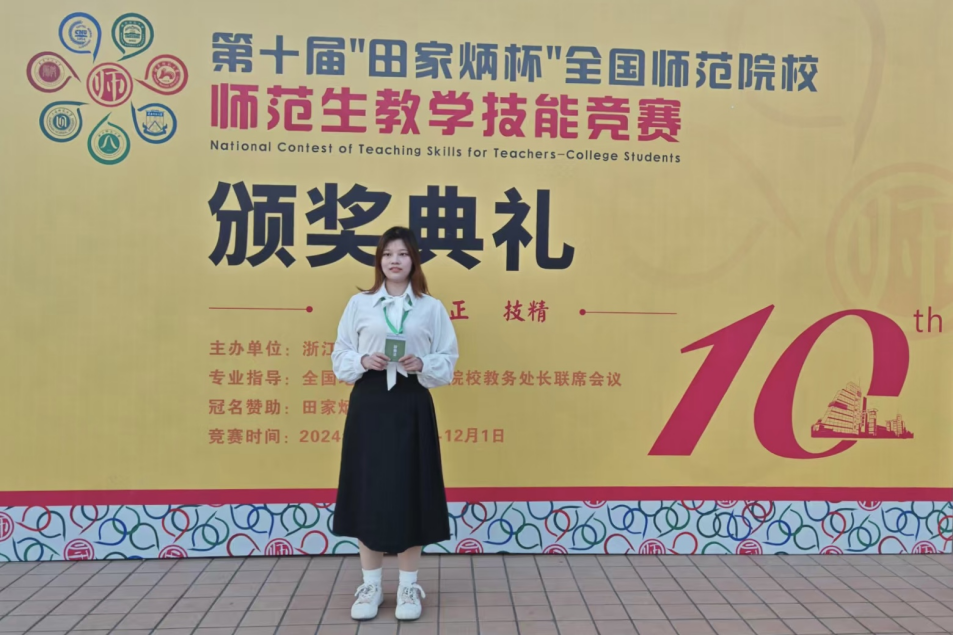 本网讯(通讯员 汪蕴好)2024年11月29日至12月1日,第十届“田家炳杯”全国师范院校师范生教学技能竞赛决赛在浙江师范大学落下帷幕,化学与环境工程学院化学专业学生孟雅静获得高中化学组二等奖。