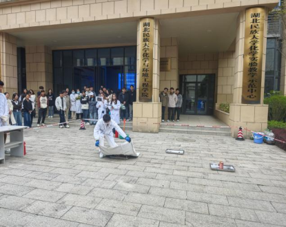 安全第一,生命至上。为强化实验室安全管理,提升师生应对实验室火灾事故的应急处置能力,筑牢校园安全防线,4月2日下午,学院联合生物与食品工程学院在工程中心B栋前举行实验室不同类型火灾应急演练活动。化学与环境工程学院党总支书记桑秋章,院长李国祥出席活动,保卫处、实验室建设与管理处、学院实验中心主任、实验室管理人员和学生200余人参加演练。