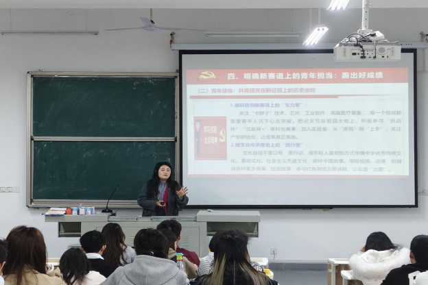 本次活动上,学院团委副书记黄昱勍围绕“何为青年担当”这一主题,结合自身育人实践中的生动案例,进行了深入浅出的讲解,深化了同学们对时代责任与青年使命的理解。活动还就“十五五”时期相关规划与政策作了解读。