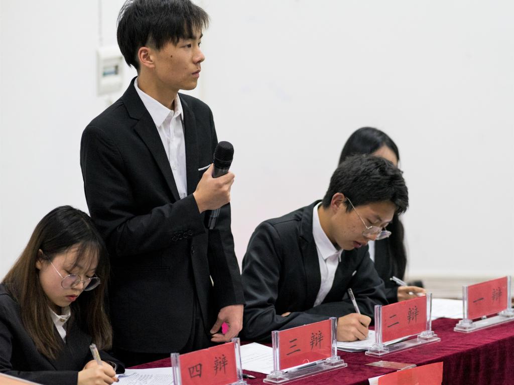 正方生物科学与技术学院与反方化学与环境工程学院围绕“讲好中国故事更应侧重伟人的故事”与“讲好中国故事更应侧重凡人的故事”展开辩论。最终,正方三辩张金浩与反方三辩王鑫荣获优秀辩手的称号。
