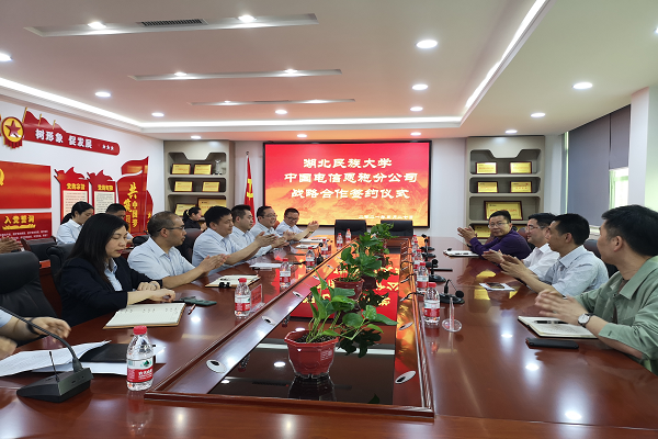 本网讯(通讯员 沈济南)5月28日,我校与中国电信恩施分公司战略合作协议签订仪式在恩施电信会议室举行。我校党委常委、副校长邓磊与恩施州分公司副总经理汪厚瑞代表双方在协议书上签字,恩施州分公司及相关部门负责人,我校信息工程学院等相关部门负责人参加签约仪式。