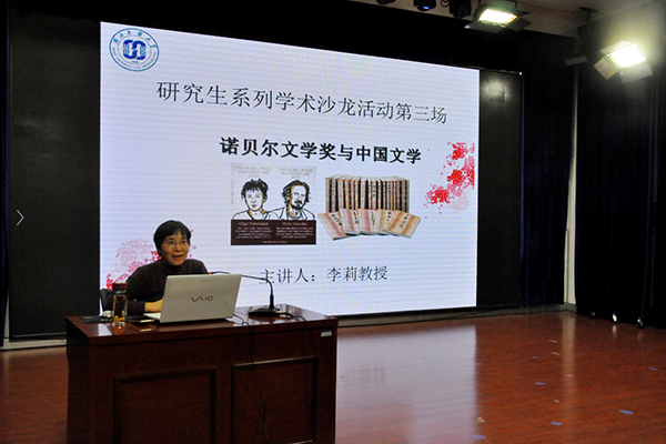 主讲人李莉教授讲解《诺贝尔文学奖与中国文学》