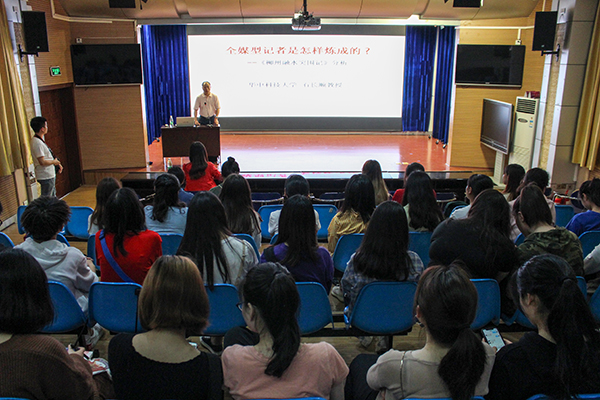 本网讯(通讯员 熊诗怡 记者 韦飞帆 通讯员 李鑫/文 记者 吕梦蝶/图)4月24日,湖北广播电视台总编辑向培凤、华中科技大学教授石长顺在我校文传演播厅分别作以“戏剧冲突在电视剧及综艺节目中的运用”“全媒型记者是怎么样炼成的”为主题的学术讲座。该院党委书记杨光宗出席讲座,院长罗翔宇担任主持人。