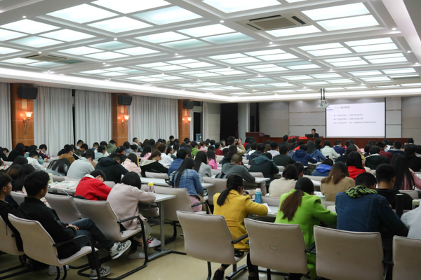 本网讯(记者 卫瑞 李珺颜/文 段荦艺/图)11月1日晚,法学院在德智楼三楼多功能报告厅开展以“依法维护社会公平正义――司法体制改革的历史沿革与发展”为主题的法律知识讲座。恩施州中级人民法院党组书记、院长许一鸣担任主讲人。该院副院长司马俊莲、汪燕,相关法律实务人员及200余名师生聆听此次讲座。