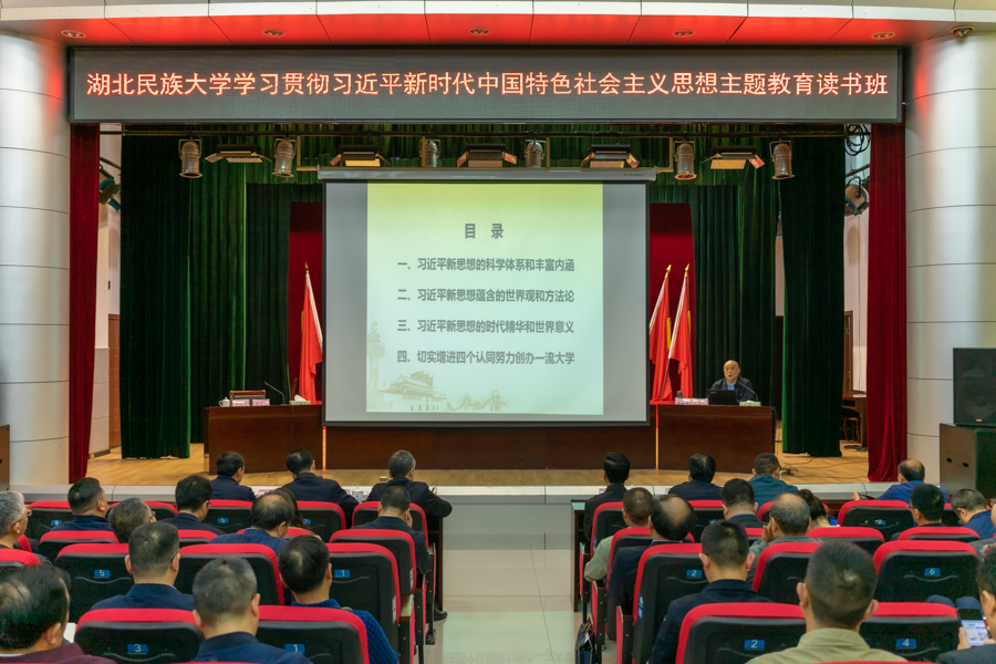 反复研读党的二十大报告和党章,深学深悟《习近平著作选读》第一卷、第二卷,系统学习《习近平新时代中国特色社会主义思想专题摘编》《习近平新时代中国特色社会主义思想的世界观和方法论专题摘编》《习近平关于调查研究论述摘编》等著作……5月6日上午,365电子娱乐官方网站学习贯彻习近平新时代中国特色社会主义思想主题教育专题“读书班”正式开班,校级干部“读书班”在行政楼6号会议室开展了第一次集中研学。当天下午,学校举行主题教育“读书班”首场学习报告会,邀请中国社会主义学院特邀研究员、中组部和教育部全国教育培训中心客座教授、高级培训员桂汉良教授为读书班学员作辅导报告。