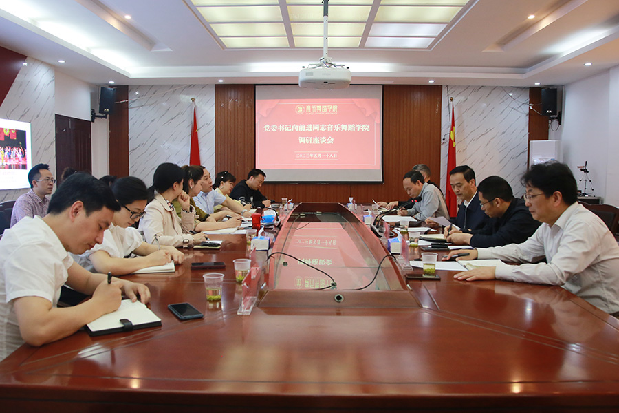 5月18日,学校党委书记向前进带队先后到音乐舞蹈学院党建阵地以及演播厅、排练房、录音棚、地方戏工作坊等现场实地了解基层党建和事业发展情况。调研座谈会上,向前进一行与音乐舞蹈学院党政班子成员、各科室负责人及党支部书记进行了深入座谈交流,详细了解主题教育开展情况,以及基层党建、事业发展等方面取得的成绩、存在的困难和工作打算。